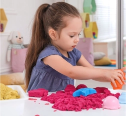 Leg med kinetisk sand udvikler børns fine motorik og kreative tænkning. Den specielle tekstur og plastiske struktur giver en exceptionelt behagelig taktil oplevelse. At hælde sand har en afslappende og beroligende effekt.