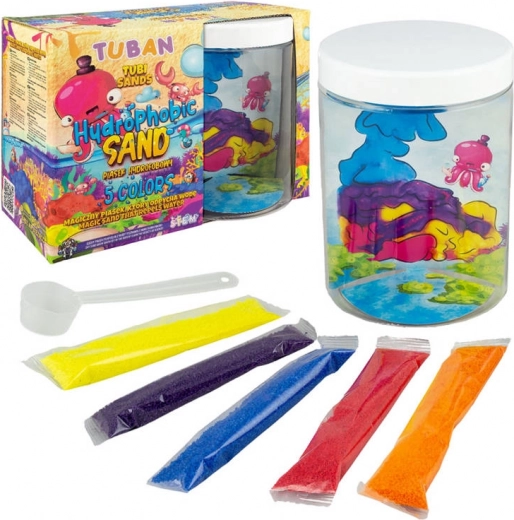 Opdag hydrofobt magisk sand fra TUBAN, som frastøder vand og forbliver tørt, selv efter det tages op af vandet. Skab underhavsmotiver, bland intense farver, og oplev sjove videnskabelige eksperimenter for både børn og voksne.