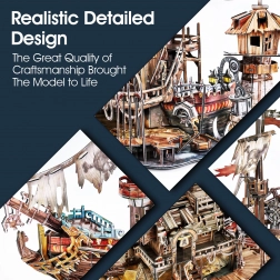 Oplev magien ved en piratbugt, og skab en imponerende dekoration derhjemme med 3D-puslespillet Pirathavn Tortuga. Modellen med mål ca. 48 × 27 × 38 cm byder på realistiske detaljer, der vækker piraternes verden til live. Bygningen foregår uden lim og saks – de udstansede dele trykkes nemt ud af arket og samles efter vejledningen.