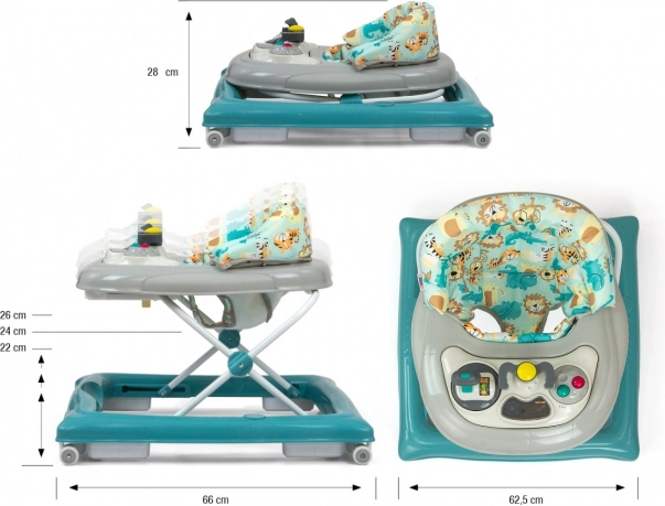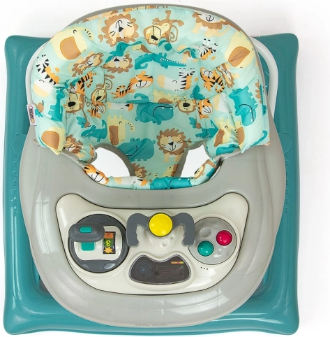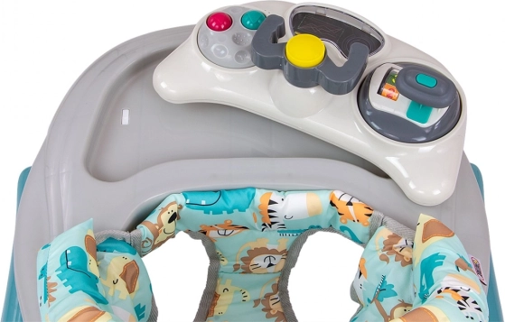 Produktet har et aktivitetspanel, der rummer en række overraskelser for små opdagere: lys, pivelyde, melodier, rasler, knapper og andre bevægelige elementer. Når panelet tages ud af bakken i gåstolen, kan det bruges som et selvstændigt legetøj, f.eks. som en hyggelig rejseledsager, og den øverste del kan bruges som aktivitetsbord.