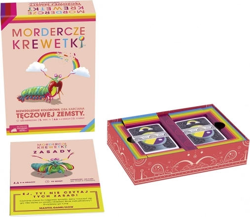 Morderiske rejer, det nye spil fra skaberne af Exploding Cats, er et hæsblæsende spil, hvor vi kæmper om at være de første til at samle 10 kort i vores pointbunke. For at nå det mål forsøger vi at samle sæt i de rigtige farver ved at lægge nye kort i vores eget akvarium eller ved at stjæle dem fra modstanderne. Desværre kan vi aldrig være sikre på, hvilket kort vi vender op i vores tur.