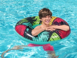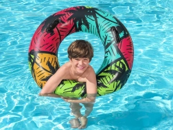 Bestway oppustelig svømmering er let, kompakt og klar til bekymringsfri vandaktiviteter. Takket være to solide håndtag er det let at komme i og op, og det farverige tropiske motiv giver din sommer den helt rigtige feriestemning.