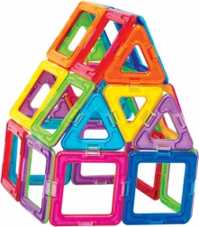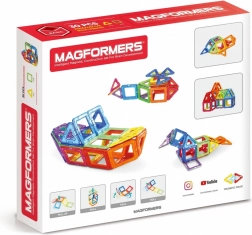 Magformers Basic 30 er klodser med indbyggede kraftige neodymmagneter, som altid tiltrækker hinanden. Det er nok at føre to klodser sammen med deres flader, og de forbinder sig øjeblikkeligt. Takket være klodser formet efter geometriske figurer kan du bygge smukke tredimensionelle konstruktioner. Til legen kan du bruge den vedlagte vejledning eller flere eksempler på siderne magformersworld.com eller din egen fantasi. Sættet indeholder: 12 trekanter; 18 firkanter.