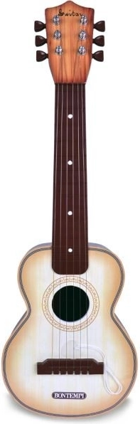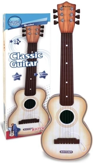 Klassisk Bontempi-guitar med 6 metalstrenge, længde 55 cm. Afgiver realistiske lyde under spil. Et fremragende valg for børn, der viser interesse for musik og vil udvikle deres første færdigheder.