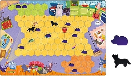 Listige mus prøver at komme ind i spisekammeret fyldt med forsyninger. De skal være på vagt og passe på de to katte, der forsøger at fange dem. Der er gang i rengøringen i køkkenet, så musene kan gemme sig bag en spand eller en børste og sidde musestille under kosten. Lykkes det musene at narre kattene og komme ind i spisekammeret? Enkle regler, strategi og konkurrence mellem spillerne sørger for spændende underholdning!