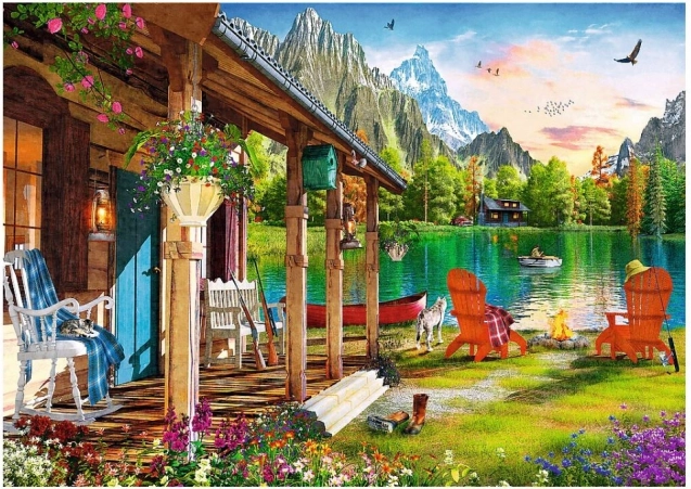 Oplev afslapning med et puslespil på 500 brikker med motiv af et hus i bjergene med udsigt over en sø. Når det er samlet, får du et billede på 48 × 34 cm. Kvalitetskalenderet papir med antirefleksbehandling og økologiske fødevarefarver sikrer dybe farver, sikker samling og lang holdbarhed.