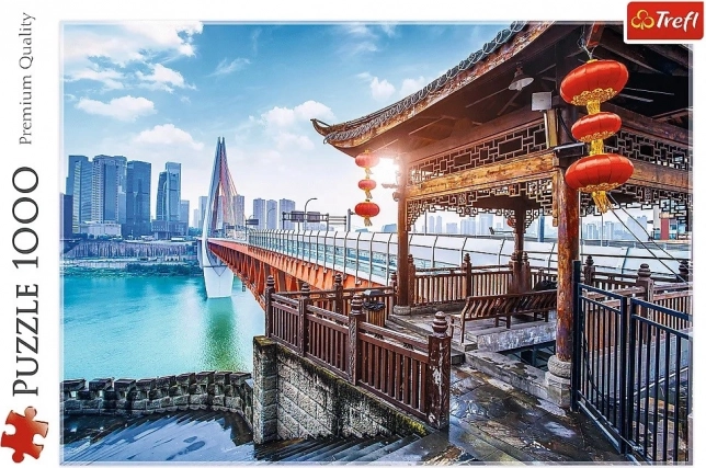 Puslespil med 1000 brikker med panorama af Chongqing. Mål 683 × 480 mm, kalandreret papir mod reflekser, fremstillet i Polen af miljøvenlige materialer.