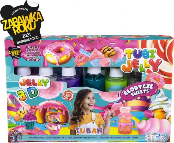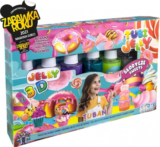 Opdag magien ved at skabe med TUBI JELLY gelmasse! Dette kreative sæt gør det muligt for børn at lave 3D gel-figurer efter skabeloner eller deres egen fantasi. Udfyld blot mønstret med farvet gel,... Vis mere