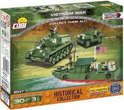 Genskab atmosfæren fra Vietnamkrigen med et sæt af tre detaljerede figurer. Viet Cong-soldaten har typisk uniform, stråhat og en ikonisk AK-47. Den amerikanske faldskærmssoldat fra 101. luftbårne division bærer ørneemblem på skulderen og er bevæbnet med en M16. Den tredje figur forestiller US Marines med skudsikker vest på bar overkrop, realistisk hjelm med camouflage og en M16 med granatkaster.