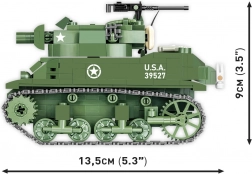Med 525 præcist fremstillede klodser får du en gennemarbejdet byggeoplevelse og en flot udstillingsmodel. Tårnet kan dreje, kanonen kan elevere, der er adgang til motoren, og modellen har navneplade. I æsken finder du også en figur af en amerikansk officer (kaptajn). Alt er produceret i EU, kompatibelt med andre byggesystemer og sikkert for børn.
