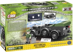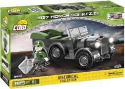 En tro kopi af bilen Horch 901, som de tyske væbnede styrker brugte i årene 1937–1945, bringer realistiske former og funktionelle detaljer til din samling. Køretøjet blev anvendt som stabsbil, ambulance, forbindelseskøretøj, let artilleritrækker samt transportør af forsyninger og soldater. COBI-modellen bruger nye typer klodser for endnu bedre karrosseformning og nemme tilpasninger.