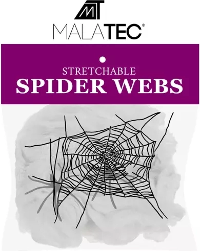Det kunstige spindelvæv fra MALATEC er en uundværlig dekoration til Halloween. Det elastiske materiale er nemt at strække, rive og forme, så du på ingen tid skaber et autentisk udseende spindelvæv på møbler, gelændere, døre eller i butiksvinduer. Fibrene er tætte og klæbende, så de efter udtrækning giver stor dækning op til 2,5 m² og et perfekt uhyggeligt look.