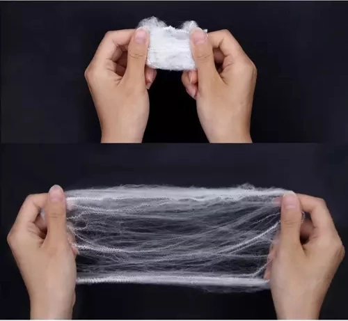 Fibrene er nemme at trække ud og holder formen, så du kan skabe et realistisk spindelvæv over store flader. Ideelt til møbler, vinduer, gelændere eller butiksvinduer.