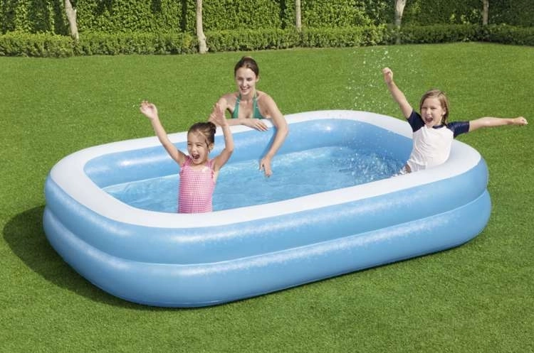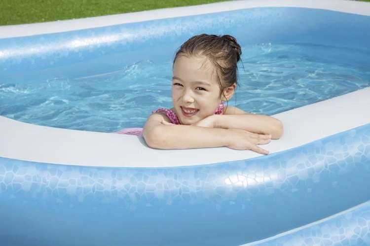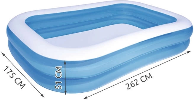 SPECIFIKATIONER - Bestway produktkode: 54006; materiale: vinyl; udførelse: 2 ens ringe / brede sidevægge / aftapningsventil til tømning; alder: fra 6 år; kapacitet: 778 liter; mål (længde / bredde / højde): 262x175x51 cm; vægt: 4,5 kg