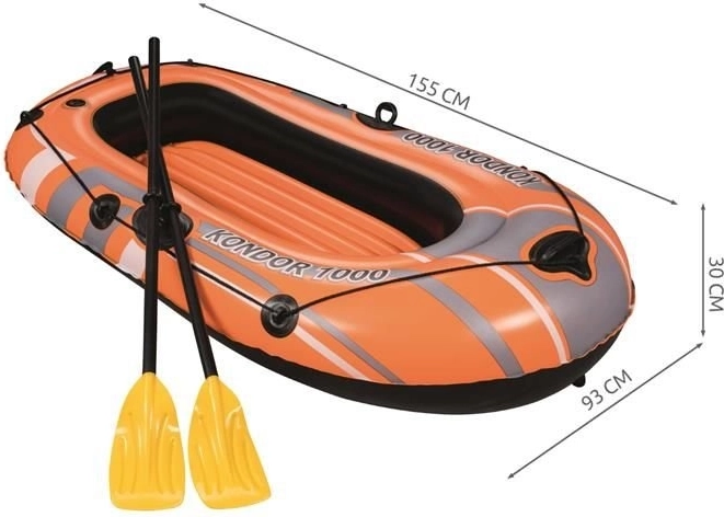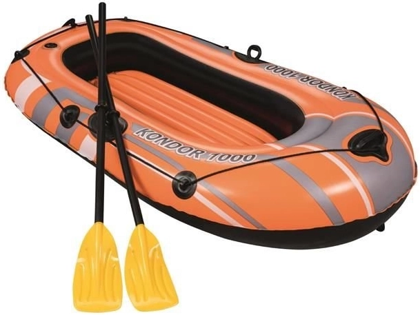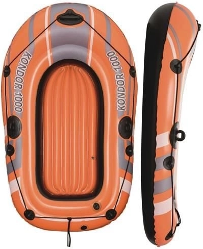 Den oppustelige båd Kondor 1000 er beregnet til rekreative vandaktiviteter. Den er udstyret med tre separate luftkamre, hvilket giver stabilitet og sikkerhed på vandet. Derudover har båden en gribeline med integrerede håndtag for nem adgang til vandet. Den oppustelige bund giver ekstra komfort under sejladsen.