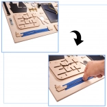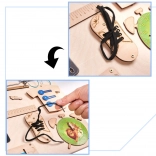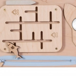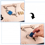 Takket være de forskellige elementer, såsom kontakter, lynlåse og mere, giver den træ-manipulationstavle børn et sikkert miljø til at udforske og lære. Små børn kan trygt håndtere hverdagsobjekter som en stikkontakt med stik eller en afbryder og samtidig udvikle deres manuelle færdigheder.