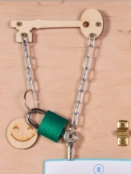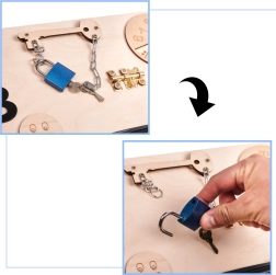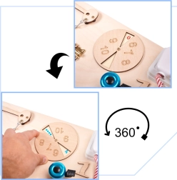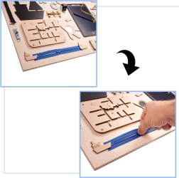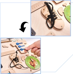 Takket være de forskellige elementer, såsom kontakter, lynlåse og mere, giver den træ-manipulationstavle børn et sikkert miljø til at udforske og lære. Små børn kan trygt håndtere hverdagsobjekter som en stikkontakt med stik eller en afbryder og samtidig udvikle deres manuelle færdigheder.