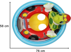 Badesædet med sæde i skildpadde- og biltema støtter den første fortrolighed med vand. Enkeltkammerkonstruktionen giver hurtig oppustning, og sikkerhedsventilen holder på luften. Maksimal bæreevne på op til 23 kg er ideel til små opdagere i alderen 3–4 år.