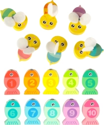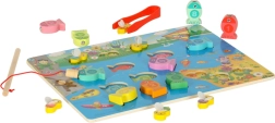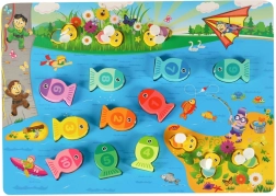 Dette kreative montessorisæt tilbyder børn tre lege i én: fiskeri med magnet og stang, indsættelse af fisk med tal i de rigtige huller og træning af finmotorikken med bier ved hjælp af pincet. Farverige elementer motiverer til leg, mens den kvalitetsrige træudførelse med afrundede kanter sikrer sikkerhed.