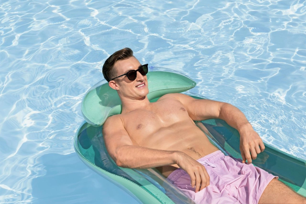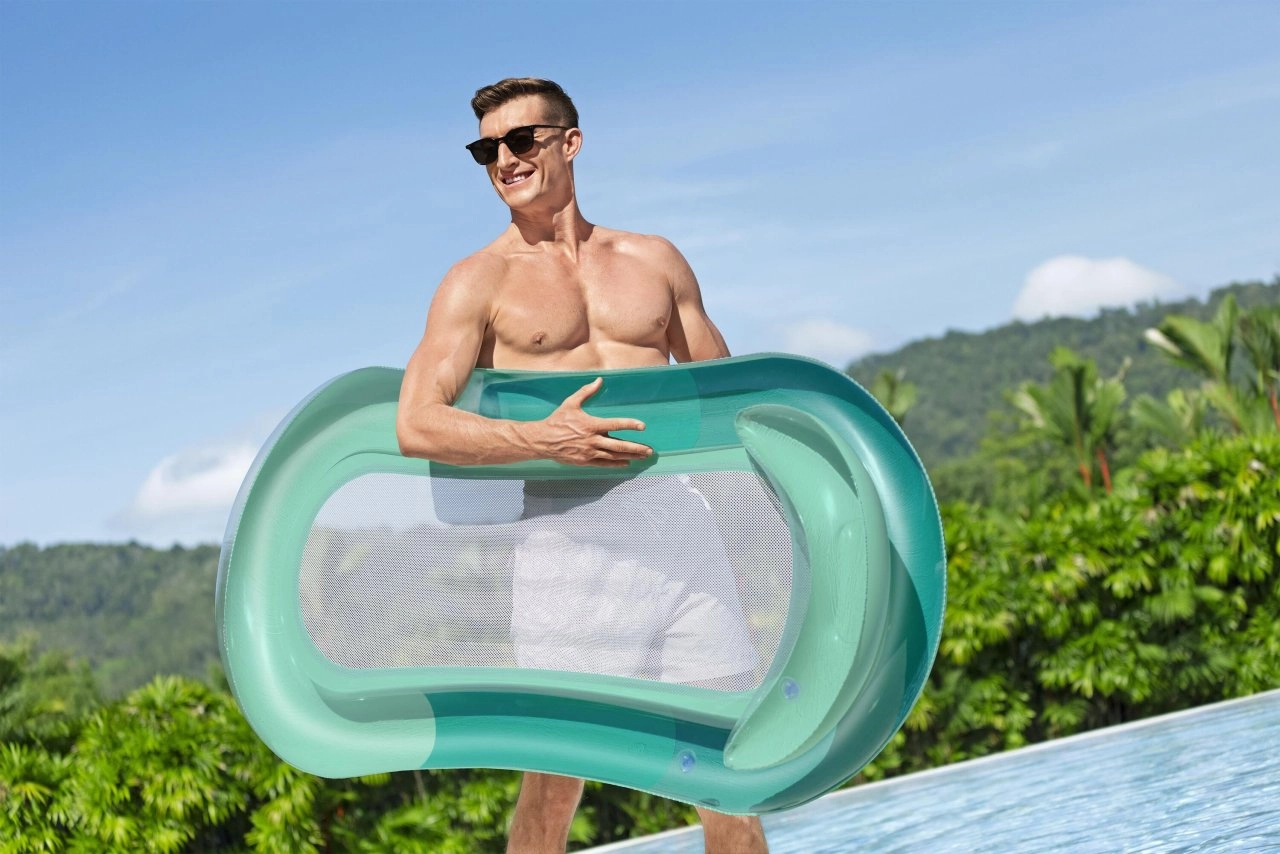 Liggestolen er beregnet til én person og kan bære op til 90 kg, så både voksne og unge kan nyde afslapning ved vandet. Takket være den netforstærkede bund forbliver du behageligt afkølet, mens den ergonomiske form med pude støtter hoved og nakke.