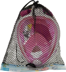 Den indbyggede snorkel med tørt “dry-top”-system begrænser vandindtrængning ovenfra. Masken tilpasser sig let ansigtets form takket være blød silikoneforsegling og justerbare stropper. Pakken indeholder ørepropper og en holder til actionkamera (f.eks. GO PRO), så du kan forevige dine bedste øjeblikke under overfladen. Den praktiske mesh-pose gør transport og opbevaring nemmere.