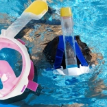 Maske, ørepropper, holder til montering af GO PRO-kamera