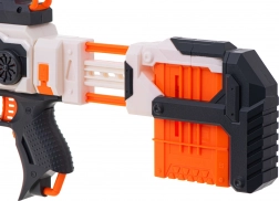 Pakken indeholder alt til lange kampe: 30 skumpile, 2 magasiner (6 og 10 skud), skulderkolbe med holder til ekstra magasin, lyddæmper/løb for mere stabil skydning og en funktionel lygte. Leg med blasteren udvikler koordinering, finmotorik ved magasinladning og teamsamarbejde.