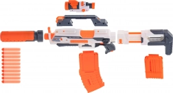 Byg dit eget action-setup med denne modulære 4-i-1 blaster. Basisriflen kan nemt udvides med tilbehør for maksimal sjov og præcision. Sættet indeholder 2 magasiner (til 6 og 10 pile), 30 skumpatroner, aftagelig lyddæmper/løb, skulderkolbe med holder til magasin og funktionel lygte. Takket være de taktiske skinner kan du tilpasse våbnet til din spillestil, det forskydelige udkastningsvindue gør det lettere at fjerne en pil, og den sammenklappelige korn hjælper med sigtet.