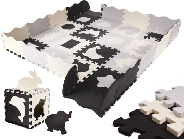 Oplev uendelige mængder af sjov med uddannelses puslespilsmåtten! Denne store skummåtte med aftagelige elementer i kontrastfarver er perfekt til små børn, der udforsker verdens former og farver.