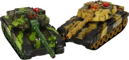Sæt med to RC T90-tanke i skov- og ørkencamouflage giver realistiske kampe for to spillere. Infrarød skydning, vibrations-rekyl, lysindikatorer for træffere og rige lydeffekter sikrer spændende action. Styring på 2,4 GHz giver jævn kørsel, tårnrotation og skydning – perfekt underholdning i mange timer.