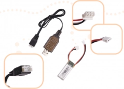 Spændvidde: 750 mm Modellængde: 565 mm Vægt uden batteri: 100 g Ombordtid: op til 15 min. Niveau: for begyndere Frekvens: 2,4 GHz Materiale: EPO Rækkevidde: op til 200 meter Batteri: LiPo 7,4 V 300 mAh Opladningstid: 30–40 minutter Batterier til sender: (medfølger ikke)