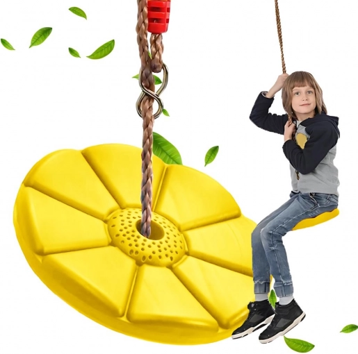 Denne gynge med glat sæde formet som en blomst er ideel til haven, terrassen og også indendørs. Takket være de justerbare reb hænger du den nemt op i et træ eller et legeredskab og giver børnene aktiv bevægelse og glæde i den friske luft.