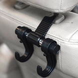 Universel bilkrog er en fremragende hjælper til at holde orden i bilen. Den giver dig mulighed for sikkert at hænge indkøb og andre genstande op med to kroge, hvis vinkel kan justeres efter behov.