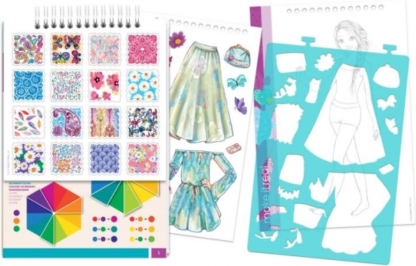 Designerportefølje med blomstermotiv giver børn mulighed for at udvikle kreativiteten med mere end 120 skabeloner og klistermærker, ideel til unge designere.
