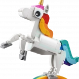 Med dette fortryllende sæt kan børn bygge en yndefuld enhjørning med gyldent horn, regnbuehale og bevægelige ben og hove. Modellen kan udstilles på en regnbuefod og stilles i en klassisk positur på to bagben, eller den kan stå på alle fire.