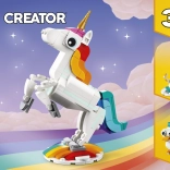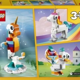Opdag en fantasiverden med LEGO Creator 3-i-1 Magisk Enhjørning. Børn fra 7 år vil elske at bygge og lege med tre modeller i én – en enhjørning, en søhest og en påfugl. Bevægelige dele, farverigt design og mulighed for udstilling på stander gør hver legeoplevelse til et magisk eventyr.