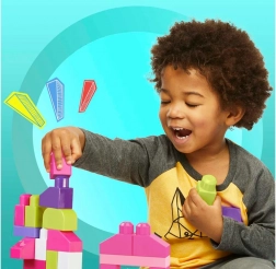 Med disse farverige byggeklodser Mega Bloks er der ingen grænser for legen! Udvikling af kreativ tænkning og finmotorik takket være let sammenkobling og adskillelse af klodser. Perfekt til at bygge tårne, slotte og fantasifulde skabninger. Efter legen kan sættet let opbevares i den medfølgende praktiske taske.