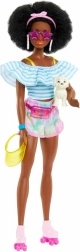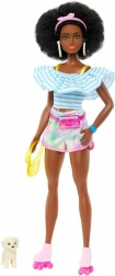 Denne mode-dukke bringer frisk sommerstil og masser af muligheder for at udvikle fantasien. En flæsebluse med striber, pastelfarvede sportsshorts og lyserøde rulleskøjter understreger hendes markante look. Det krøllede afro-hår giver karakter og originalitet.