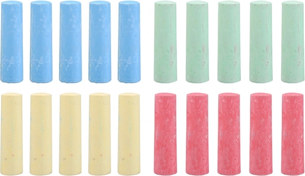 Oplev glæden ved at tegne under åben himmel med et sæt på 20 stykker fortovskridt. Fremragende til leg, læring og kreativ skaben. Kridtene har intense farver, dækker godt og kan efter regn eller skylning hurtigt fjernes uden rester.