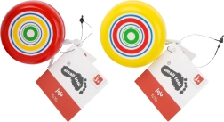 Klassisk træ jojo med en farverig spiral i gul er en fascinerende bevægelseslegetøj for børnehænder. Træner motoriske færdigheder og øger begejstringen for egne evner.