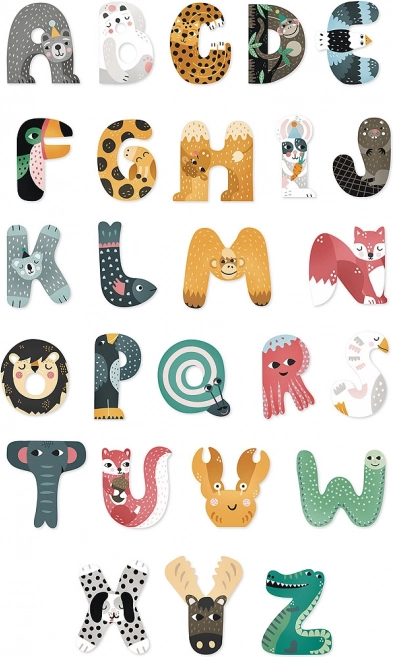 Hvert bogstav er pyntet med dyremotiver, som stimulerer børns fantasi.