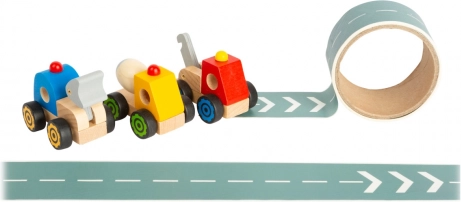 Sættet med træ-køretøj og vej-tape bringer leg, der vokser med fantasien. Børn kan nemt klistre en “vej” op, designe kryds og racerbaner og straks tage på tur. Bilen af kvalitets træ er robust, behagelig at holde i og ideel til små chauffører fra 3 år.