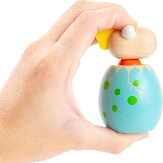 Designet med den glade lille fyr, der kigger ud af et farverigt æg, indbyder til fantasifuld leg og støtter den naturlige sanseudvikling. De kompakte mål ligger godt i den lille hånd og gør det lettere at gribe og håndtere.