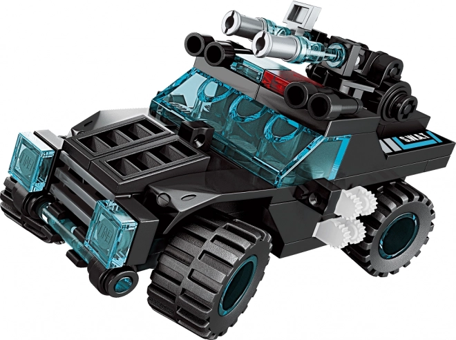 Af de enkelte minibyggesæt samler du en komplet, detaljeret model med funktionelle elementer – hjul, tårn, arme og våben til actionfyldte scenarier.