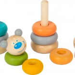 De farvede ringe ligger godt i små hænder og indbyder til gentagen stableleg. Når børnene sætter ringene på stangen, træner de præcise bevægelser, hånd–øje-koordination samt forståelse for størrelsesrækkefølge.