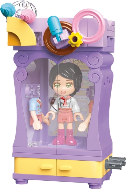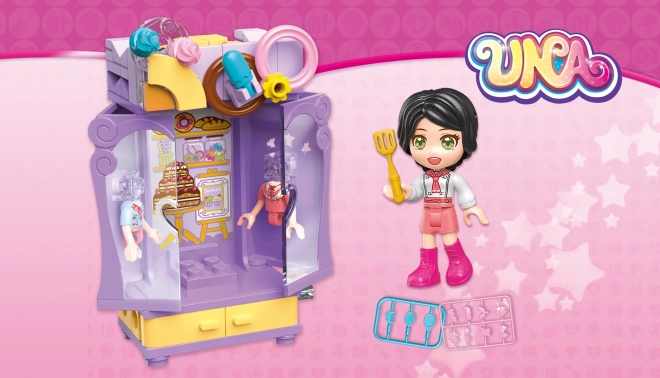 Qman UNA Series bagerens garderobeskab: byggesæt med 100 dele, 1 minifigur, af ikke‑giftig ABS-plast. Kompatibel med LEGO. Alder 6+.