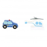 I pakken finder du politibil, helikopter, en politibetjent-figur og en forbryder samt stationsudstyr – alt klar til spændende jagter.