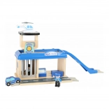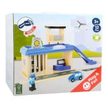 Den realistiske politistation fra small foot stimulerer børns fantasi og finmotorik. To etager, tårn med helipad, funktionel celle med udtrækkeligt gitter og parkeringsrampe skaber et gennemtænkt legeunivers. I pakken medfølger politibil, helikopter og to bevægelige figurer – en politibetjent og en forbryder – til uendelige legescenarier.