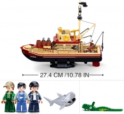 Byggesættet til fiskeskibet Catherine bringer glæde ved modellering og er ideelt til både børn og voksne, der elsker udfordringer. Det sammensatte skib måler over 27 cm og er suppleret med en realistisk haj. Byggesættet indeholder tre innovative figurer med roterende og svingbare dele af kroppen, hvilket sikrer større fleksibilitet under leg.