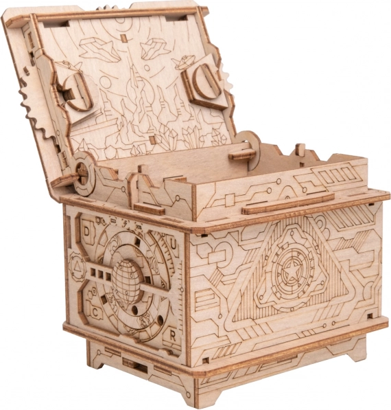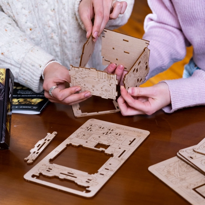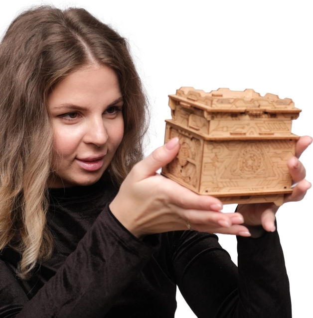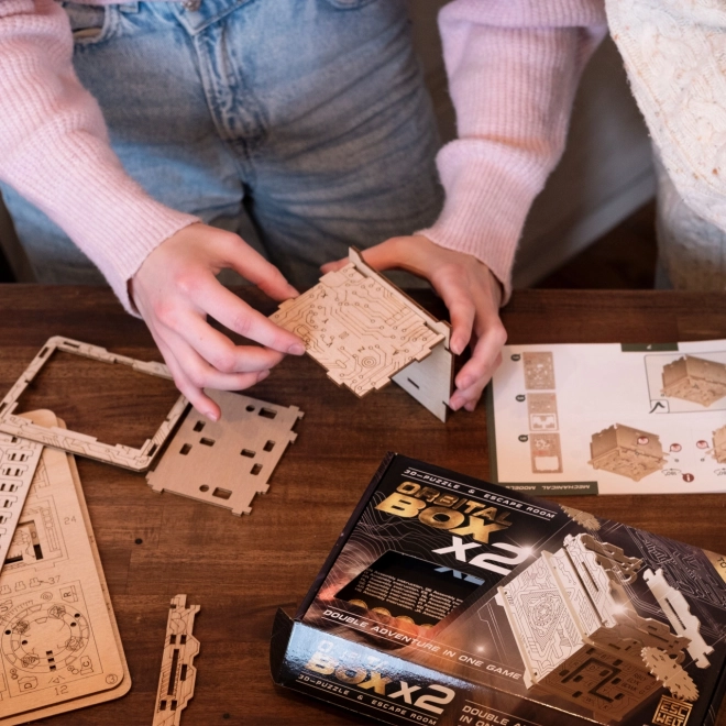 Træd ind i hjemmets escape game-univers med ESCAPEWELT ORBITAL BOX. Takket være præcise laserudskæringer og en overskuelig, illustreret vejledning samler du æsken sikkert uden lim og værktøj. Efter samlingen venter en række smarte mekanismer, symboler og kombinationer, som du skal knække for at låse op for den skjulte rumdel.